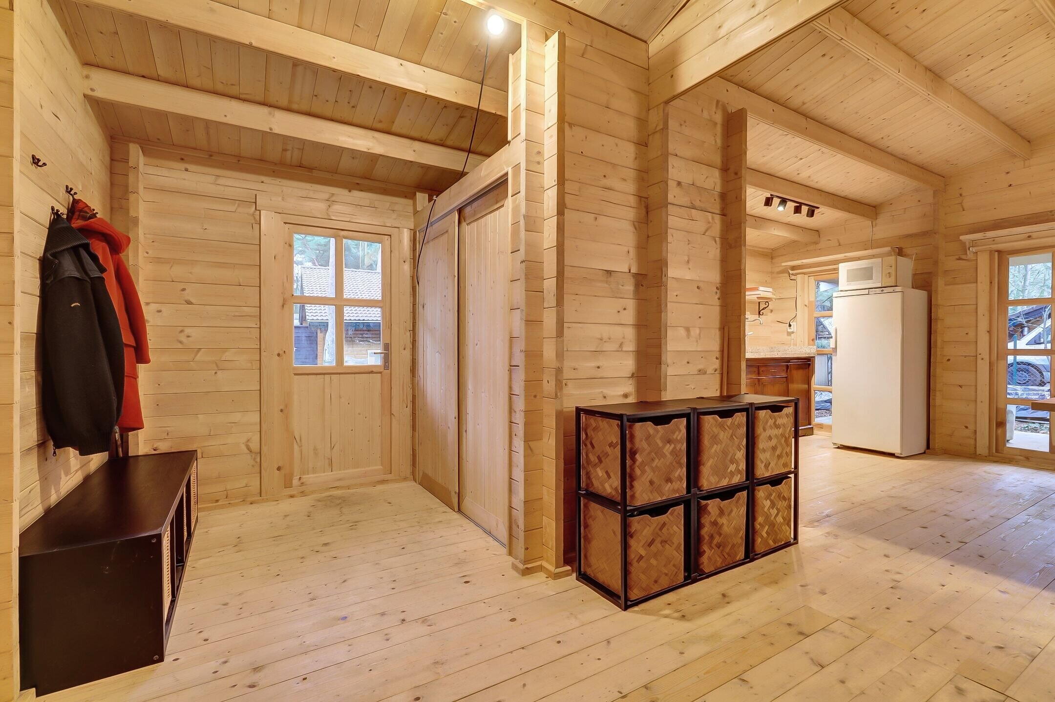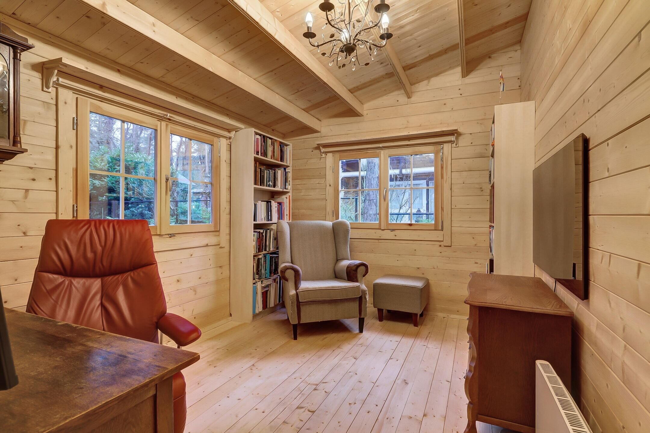 Of je nu via de voordeur binnenkomt of door de dubbele deuren van de veranda stapt, je voelt het meteen: dit huisje leeft. De geur van geolied hout, het zachte licht dat door de vele ramen naar binnen valt, de warme sfeer die zich als een deken om je heen legt.